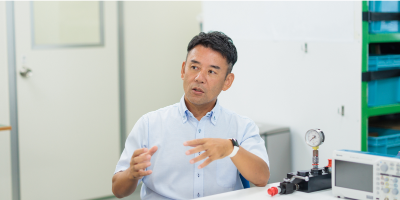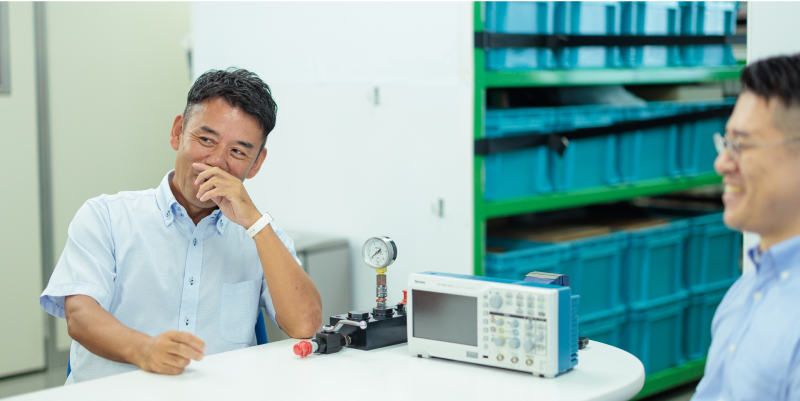 村田とは逆に、私は今まさに熱くなっている状況かもしれません。元々は技術者でしたが、キャリア30年を越えて初めてマーケティングや販売戦略の仕事をしているので、毎日が新鮮な体験の連続です。年間の3分の1は取引先の工場などに出張し、ユーザーの声や稼働状況をリサーチしています。入社時には考えられないことですね。ただ、製品に関する問い合わせや要望がほとんどなかった立ち上げ当初を思うと、今の仕事に大きな意義が感じられて、やる気がみなぎってきます。